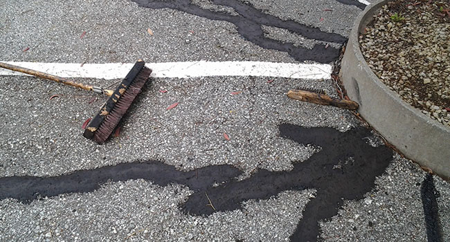 Cracks after they had been filled. Once the rejuvenator has been applied you cannot see any of the crack filling